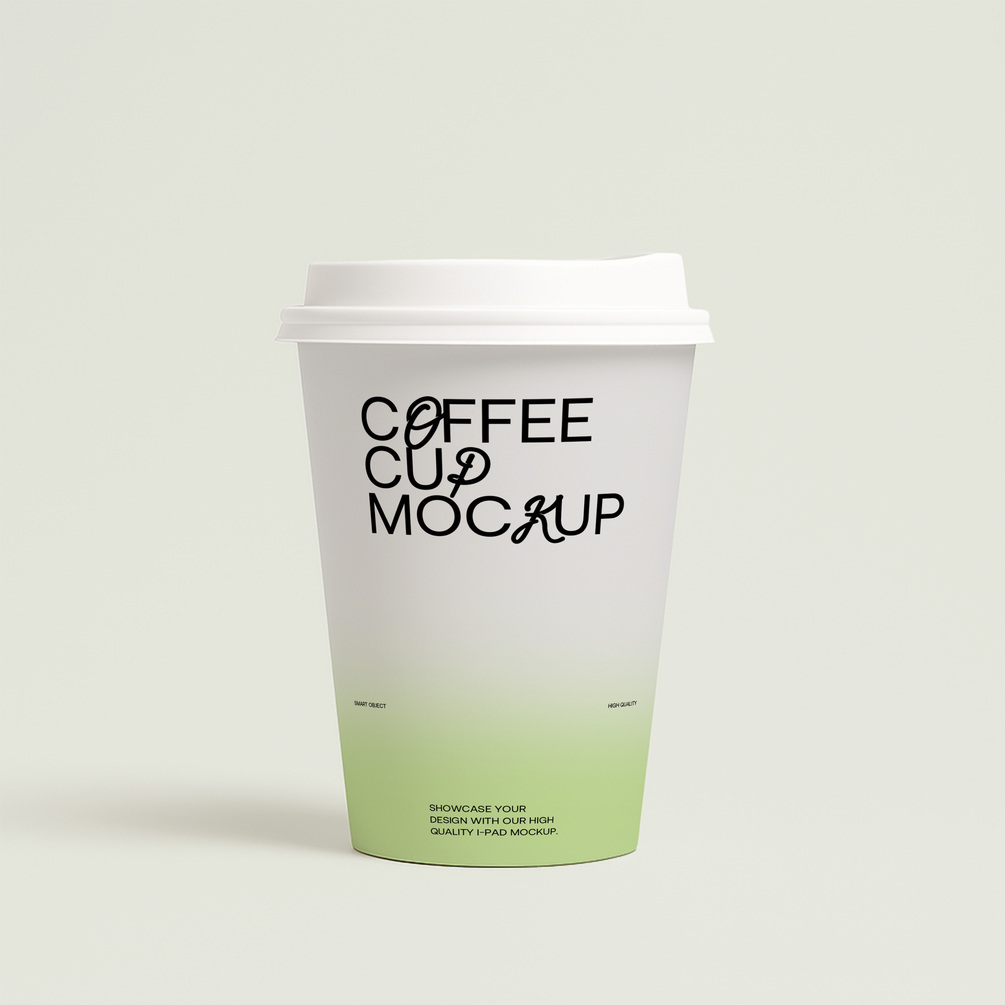 Showcase your logo, branding, or design work with this clean and professional coffee cup mockup. Featuring a soft green-to-white gradient and elegant lighting, this mockup is perfect for designers, brand strategists, and agencies. Ideal for Behance, portfolio presentations, and social media posts.